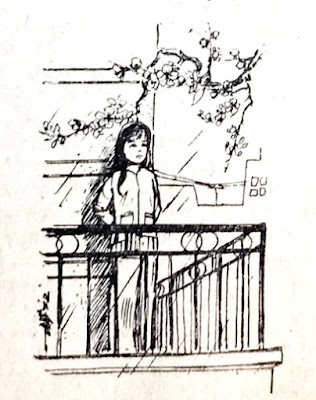 chiều con đứng ở balcon nhìn cây mai nở những đóa hoa vàng tươi, những